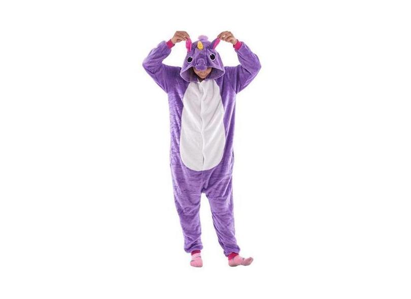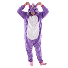 Fantasia Macacão de Unicórnio Kigurumi Infantil Lilás Com Capuz - Fant
