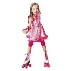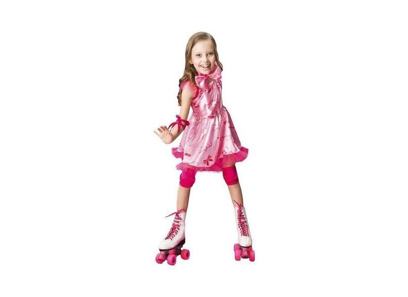 Fantasia Patinadora Infantil Rosa Com Joelheira E Cotoveleira - Fantas