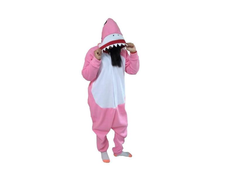 Fantasia Pijama Kigurumi Soft Tubarão Rosa - Adulto