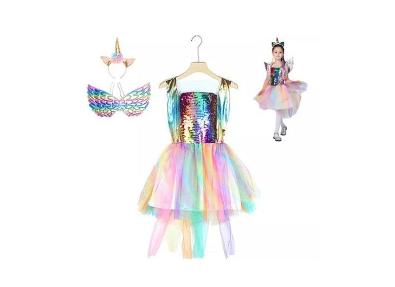 O menor preço encontrado no Brasil para Fantasia Unicórnio Menina Festas Infantil com Asas Saia de Tule Tiara atualmente é R$ 125,10.