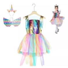 Fantasia Unicórnio Menina Festas Infantil com Asas Saia de Tule Tiara