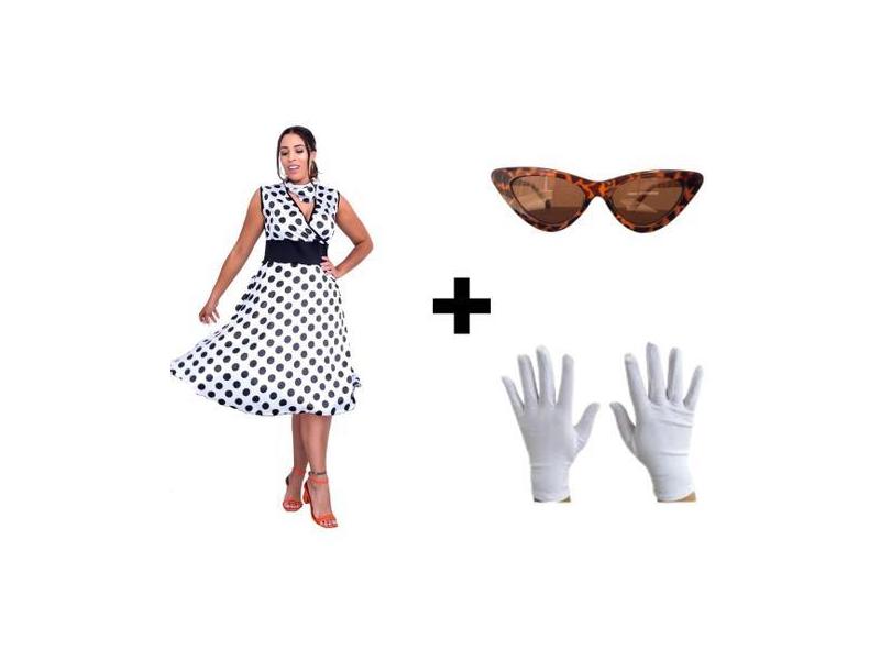 Fantasia Vestido De Bolinha Adulto Anos 60 Completa Festa Disco Vintag