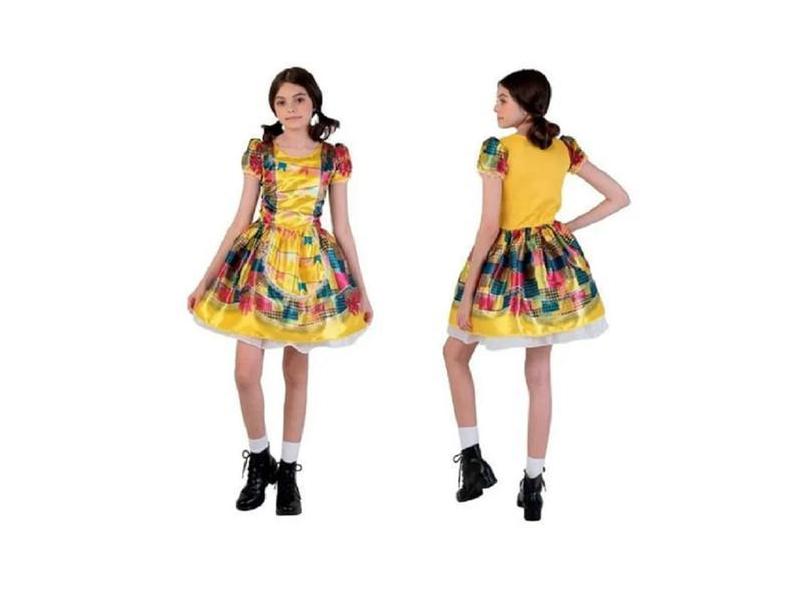 Fantasia Vestido De Festa Junina Infantil Caipirinha Amarelo - Global