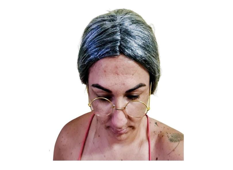 Kit Fantasia Velha Vovó Idosa Peruca E Óculos