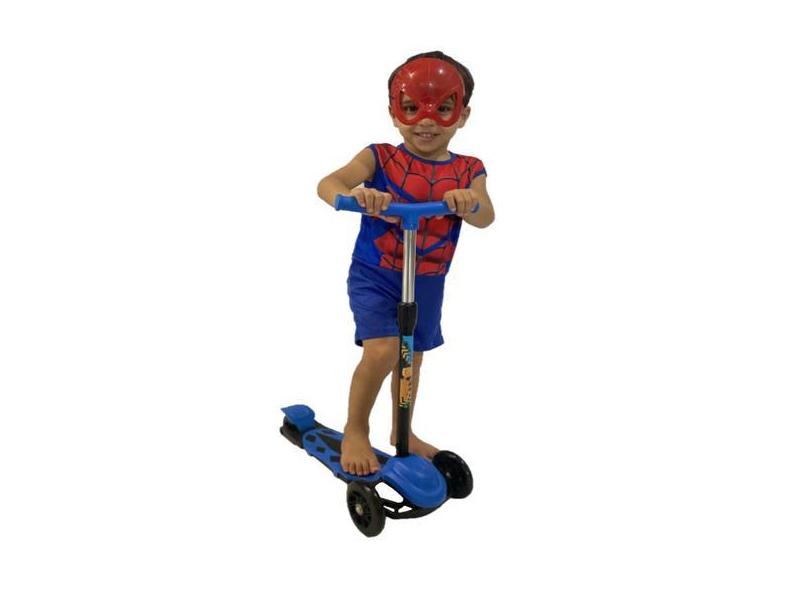 Patinete Radical Dm Toys Azul 3 Roda + Fantasia Homem Aranha