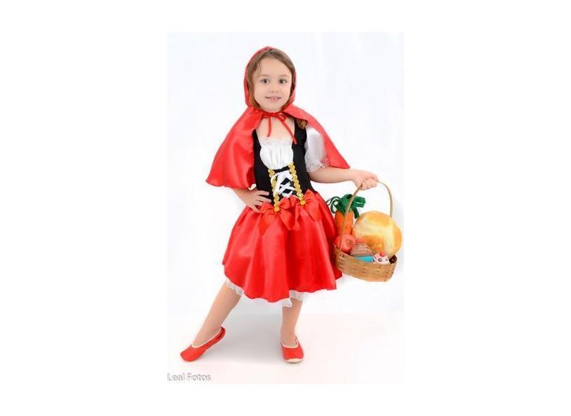 Vestido Chapeuzinho Vermelho Fantasia Infantil Com Capuz Festa Anivers