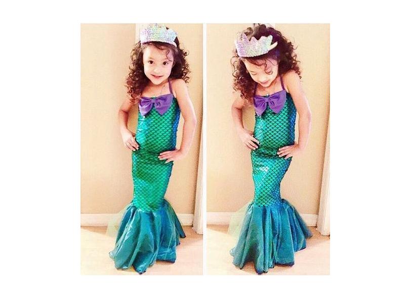 Vestido Fantasia Infantil Festa Halloween Carnaval Sereia Verde e Rosa