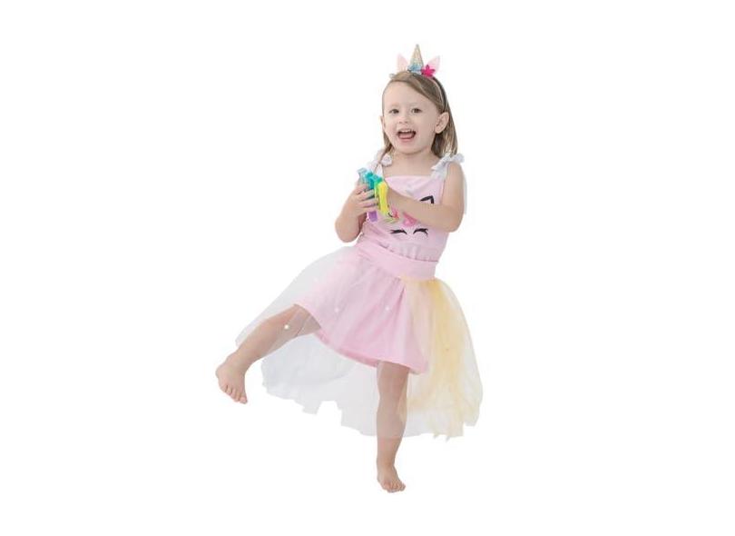 Vestido Infantil Fantasia Menina Halloween Unicórnio Tiara