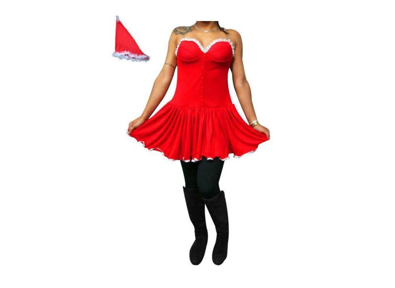 Vestido Mamãe Noel Adulto com Gorro Fantasia Noelete Ajudante do Papai Noel Traje Natalino Cosplay Noela Festa Natal