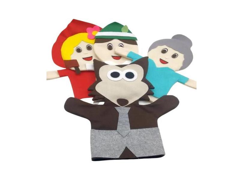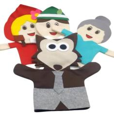 Fantoche Chapeuzinho E O Lobo Mau Feltro Com 4 Peças - Glauce Brinqued