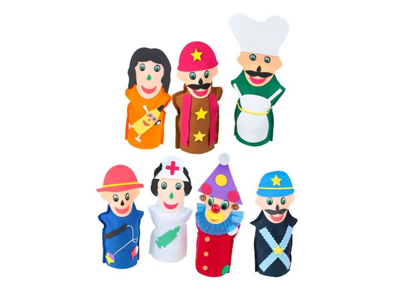Kit Fantoches Profissões Carlu C/ 7 Personagens Em Feltro Colorido