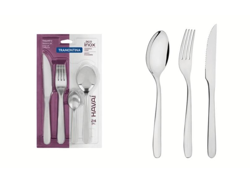 Faqueiro Havai Aco Inox 24 Peças Acabamneto Em Brilho Tramontina