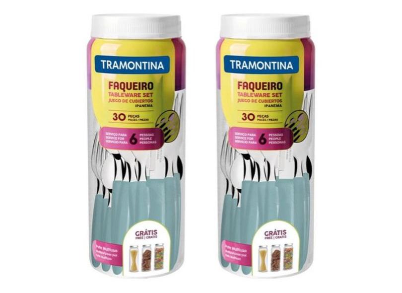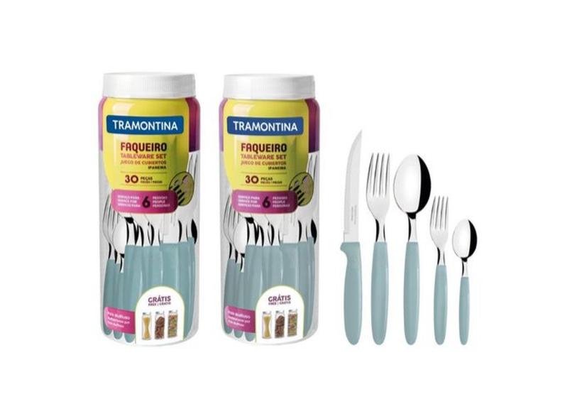 Kit Faqueiro Tramontina 60 Peças Aço Inox Ipanema Verde Água