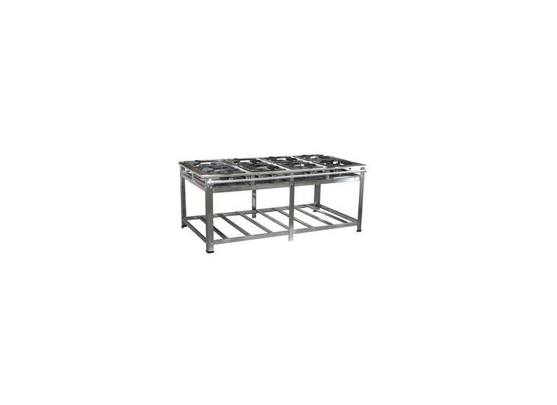 Fogão Industrial 8 Bocas 40x40 (8 Dedos) de Alta Pressão Queimador Real 185mm Perfil 9 em Aço Inox