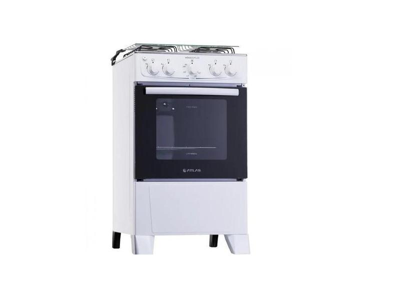 Fogão 4 Bocas Branco Mesa Inox Atlas Mônaco Plus Limpa Fácil, Branco,