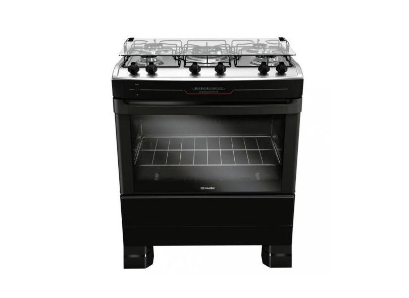 Fogão 5 Bocas Mueller MFI5BF Acendimento Automático, Preto Fosco, Bivo