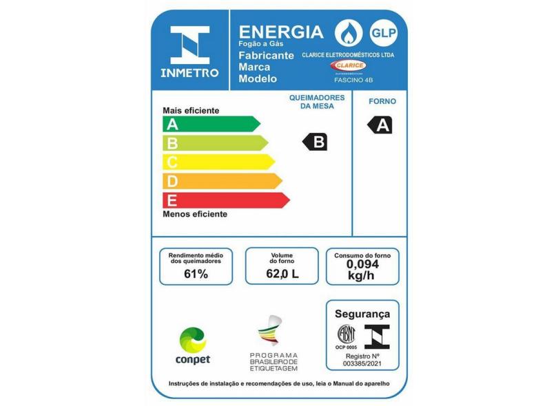 | Eficiência Energética / Selo CONPET (Mesa de Cocção) | Selo Conpet A (Mais Eficiente) |