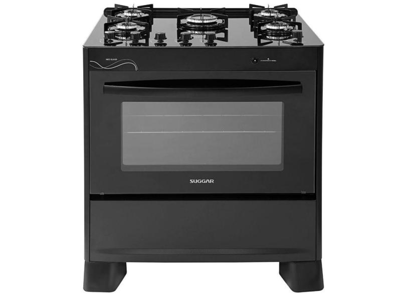 Fogão Suggar Neo Glass 5 Queimadores Mesa Vidro Preto Bivolt FGVNG510PT