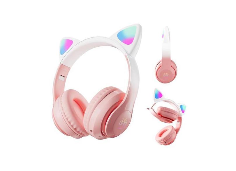 Fone De Ouvido Infantil Gatinho com Luz LED Sem Fio - FSS Variedades