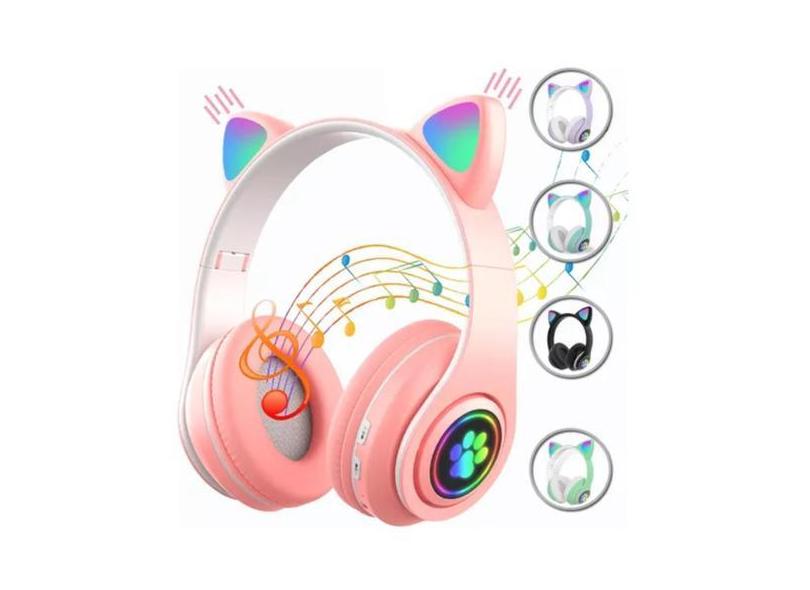 Fone de ouvido over-ear gamer sem fio CAT STN-28 rosa com luz LED - Ki