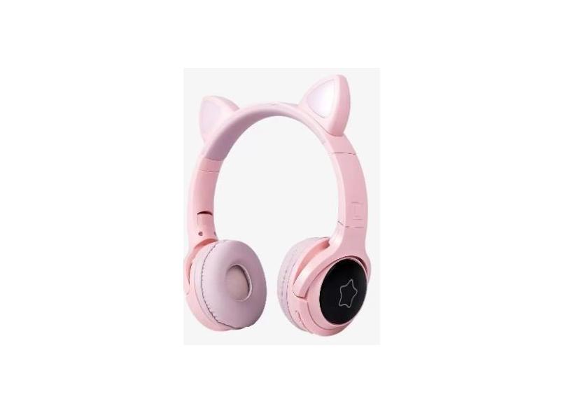 Headphone Wireless Bluetooth Gato Anime Led Hf-c320bt Exbom Pink - fun