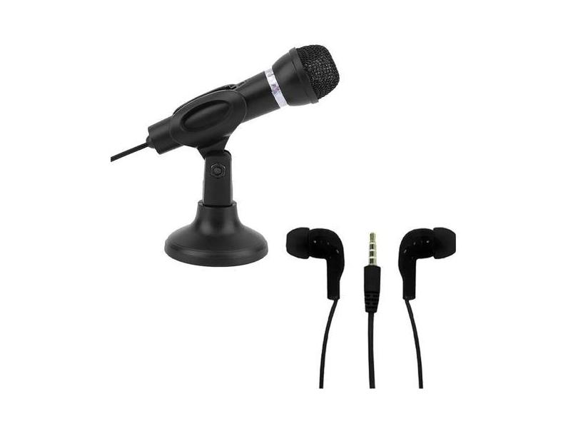 Kit Fone Slim Preto Fo-11 + Microfone Com Suporte Multimídia Studio Ma