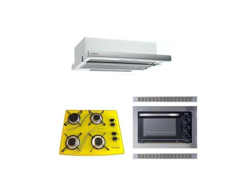 Kit Forno Elétrico Embutir 45L Depurador Embutir Cooktop 4 Bocas Safan