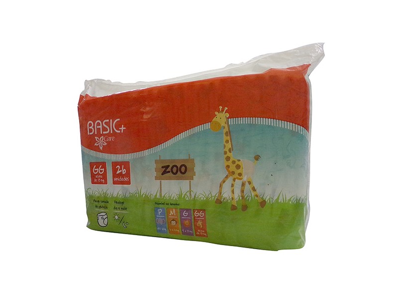 Fralda Basic+Care Zoo Tamanho XG Econômica 26 Unidades Peso Indicado +13kg