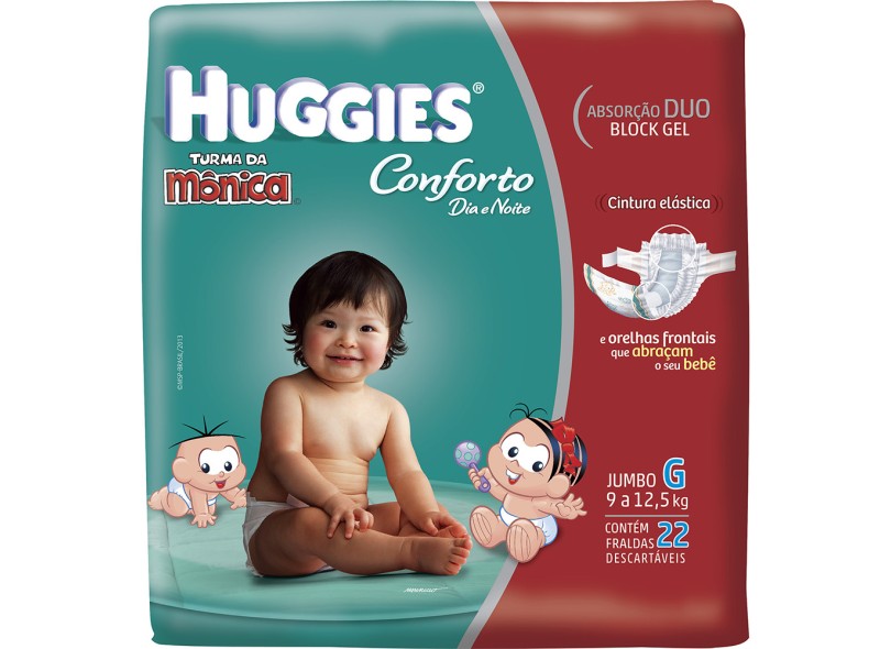 Fralda Huggies Turma da Mônica Conforto Dia e Noite Tamanho G Jumbo 22 Unidades Peso Indicado 9 - 12kg