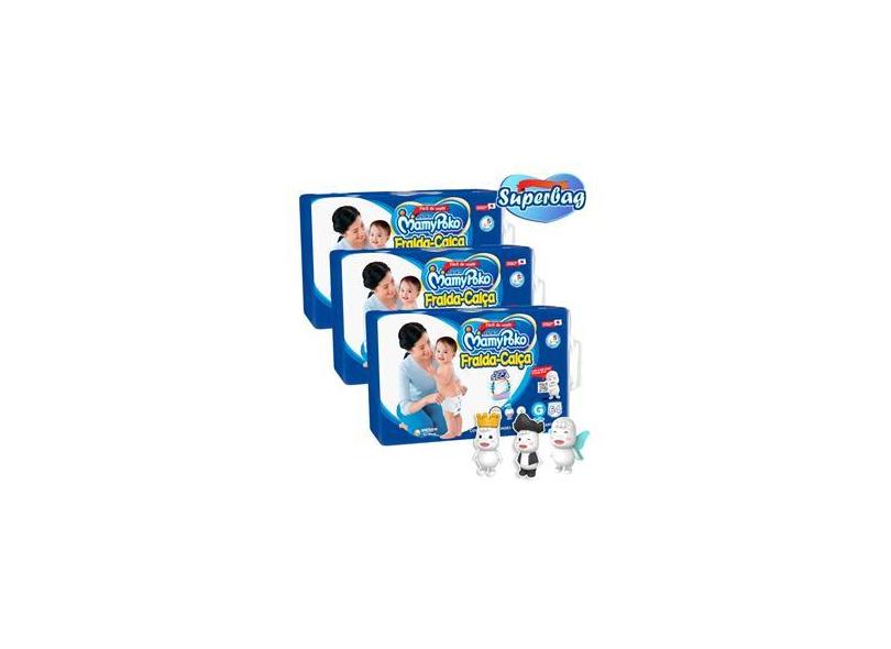 Kit 03 Super Bag FRALDA CALÇA Descartável Mamypoko G - 192 Unidades + Coleção 03 Bonecos Poko-Chan