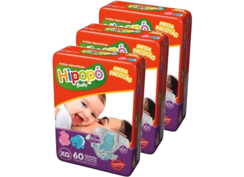 Kit 3 Pacotes Fralda Infantil Hipopó Xg 180 (3x60) Unidades