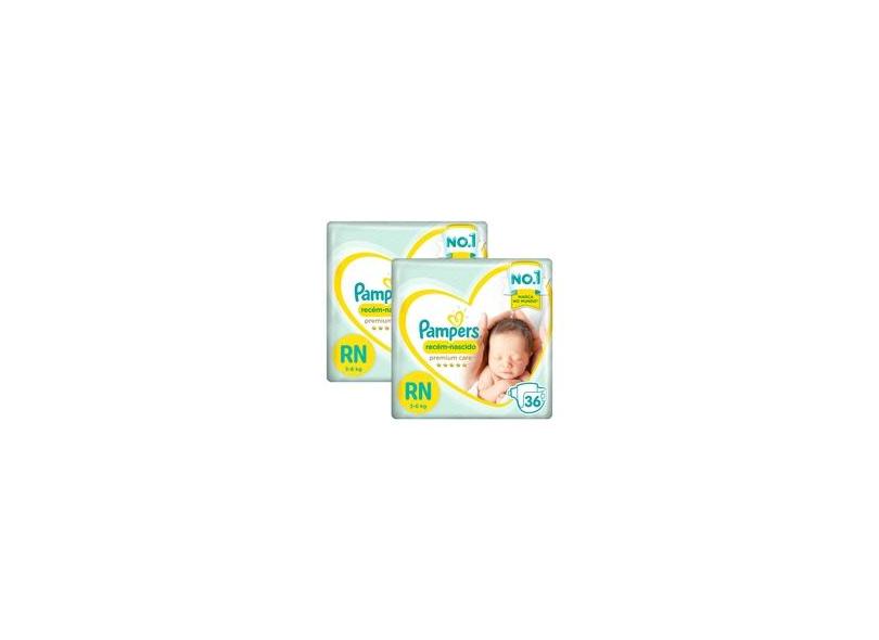 Kit Fralda Pampers Premium Care Recém Nascido com 72 unidades - 2 à 4,5Kg