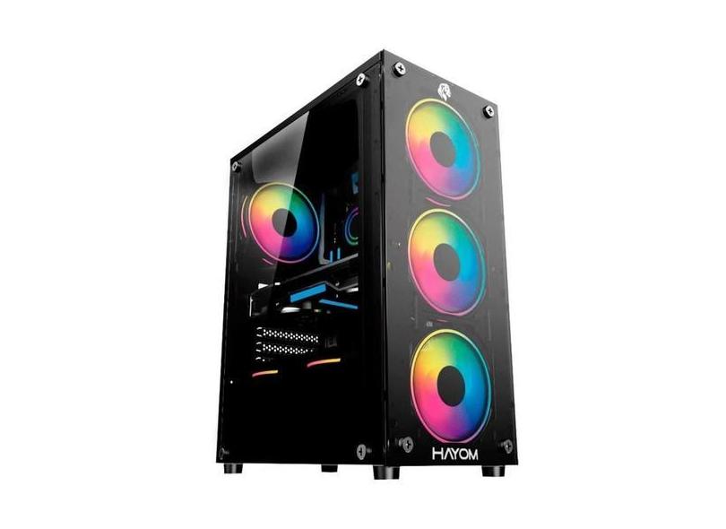 Gabinete Gamer Hayom 4 Fans S/Fonte RGB ATX MidTower Vidro Temperado P