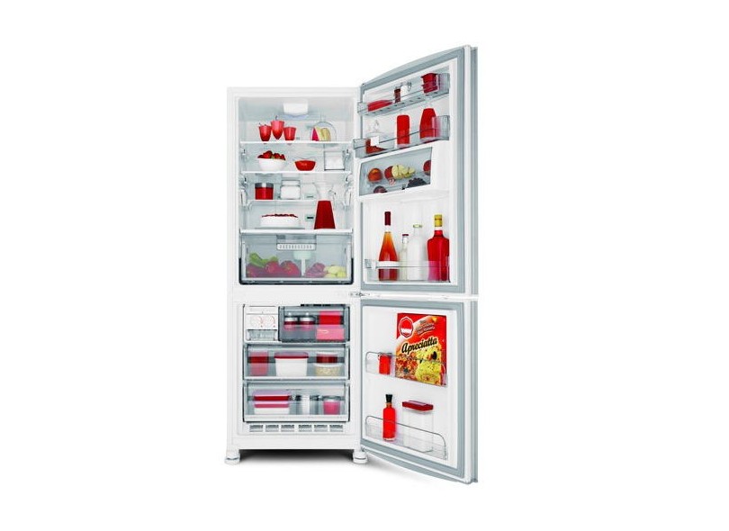 A Brastemp inverteu o conceito de geladeira quando fez a Inverse: é refrigerador em cima e freezer embaixo. A idéia da Brastemp Inverse BRE49 é a praticidade, ao deixar a parte que você mais usa ao alcance dos olhos e das mãos, evitando ter que se curvar ou abaixar para pegar o leite, as frutas ou os legumes para o jantar. Mas as vantagens não param por aí. A geladeira Brastemp Inverse BRE49 é equipada com o sistema Frost Free, ou seja, o freezer fica "livre de congelamento". Essa tecnologia evita a formação de camadas de gelo no freezer, sem que esse perca a qualidade de congelamento dos produtos, assim não é preciso ter o trabalho de descongelar. O painel eletrônico dessa geladeira Brastemp oferece um alarme de porta aberta que avisa quando a porta ficar aberta por mais de 2 minutos, além de funções especiais como "Compras" que acelera o resfriamento em todo o refrigerador, ajudando a recuperar a temperatura dos alimentos que você comprou e acabou de armazenar; e como a função "Festa", que mantém a temperatura do refrigerador estável mesmo com muitas aberturas de porta, como acontecem em festinhas e reuniões em casa. Ainda no clima de festa, a geladeira Brastemp BRE49 possui um compartimento próprio para bebidas, quando alguma função de resfriamento rápido estiver ativado: o Bar Expert. Além das várias "funções inteligentes", a geladeira Brastemp Inverse tem compartimentos que aumentam ainda mais a praticidade. Como fruteira na porta, possibilitando uma temperatura mais equilibrada, além de ser mas acessível, o que evita o famoso "estragar por estar esquecido no fundo da gaveta". E já que as frutas ficam na porta, os legumes ganham mais espaço na gaveta transparente, com controle de umidade e passagem de ar frio. Por falar em gavetas, no freezer elas podem ajudar na organização e limitar a sujeira causada pelo degelo das carnes ou o cheiro forte de alguns produtos, como o peixe. Ao mesmo tempo, porém, podem incomodar quem está acostumado com freezer mais clean, com poucos ou nenhum compartimento. A Brastemp BRE49 mudou seu conceito de geladeira e inovou quando inverteu a posição do freezer com o refrigerador. Mas, em comparação a outros modelos de geladeira duplex, ela ainda é mais cara.