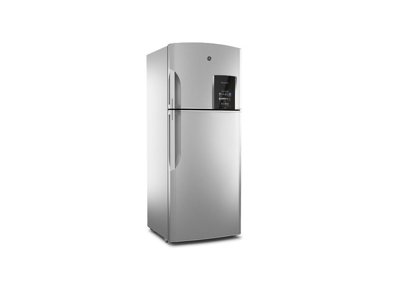 Essa geladeira GE é equipada com painel digital que controla diversas funções práticas, como o Express chill zone, que resfria rapidamente as bebidas.