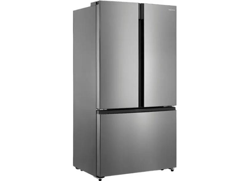 A Hisense tem em seu catálogo a RF-68W1, uma geladeira com degelo Frost Free. Enquanto o refrigerador desse aparelho tem 413.0l de capacidade, a unidade congeladora conta com 107.0l. Juntos, os dois formam os 520.0l de capacidade total. Suas portas French Door Inverse têm acabamento Aço. Com 177.8cm de altura, 91.4cm de largura e 72.5cm de profundidade, essa geladeira pesa 111.0kg.