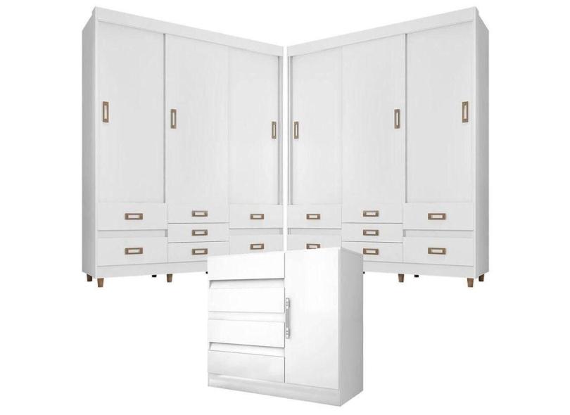 02 Guarda Roupas Casal 37020 E 01 Cômoda Exellence 8000 Branco Flex - Araplac