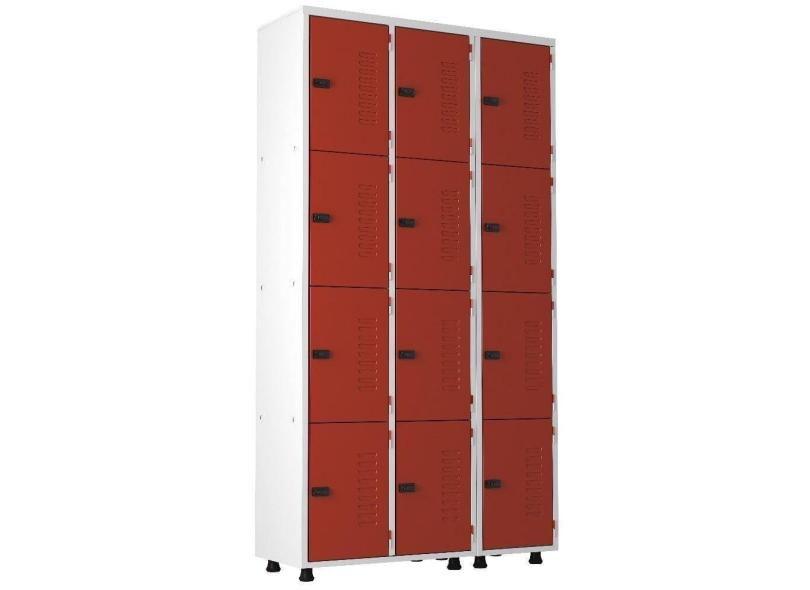 Armário Aço 12 Portas Academia Guarda Volume Trinco Vermelho