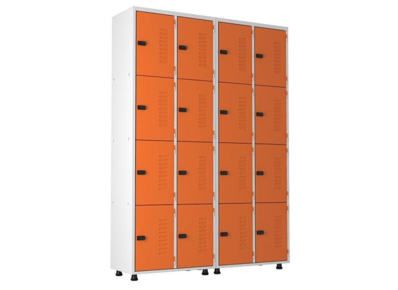 O menor preço encontrado no Brasil para Armário Roupeiro Aço 16 Portas Academia Guarda Volume Trinco Laranja atualmente é R$ 1.418,45.