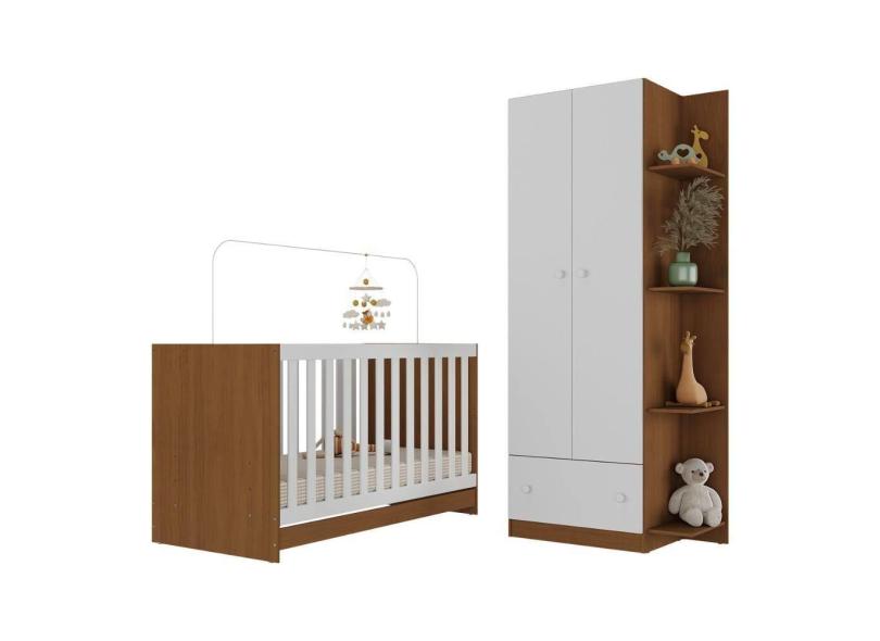 Berço 3 em 1 com Guarda-Roupas 2 Portas 1 Gaveta e Colchão Incluso Doce de Leite Multimóveis MP4242
