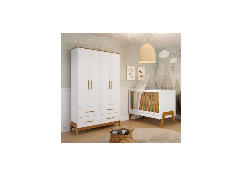 Berço 5X1 E Guarda Roupa Retro Moveis Peroba Guti Mdf Branco Amêndoa