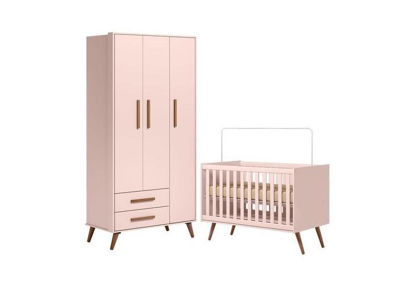 Berço Americano 3820 E Guarda Roupa Roupa 3830 Q Encanto Retrô Rosa -