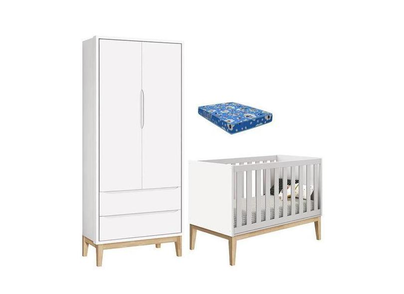 O menor preço encontrado no Brasil para Berço Americano Com Colchão E Guarda Roupa Classic 2 Portas Branco Pés atualmente é R$ 1.719,73.