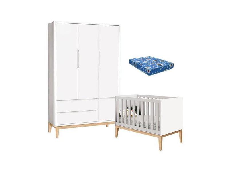 O menor preço encontrado no Brasil para Berço Americano Com Colchão E Guarda Roupa Classic 3 Portas Branco Pés atualmente é R$ 2.077,06.