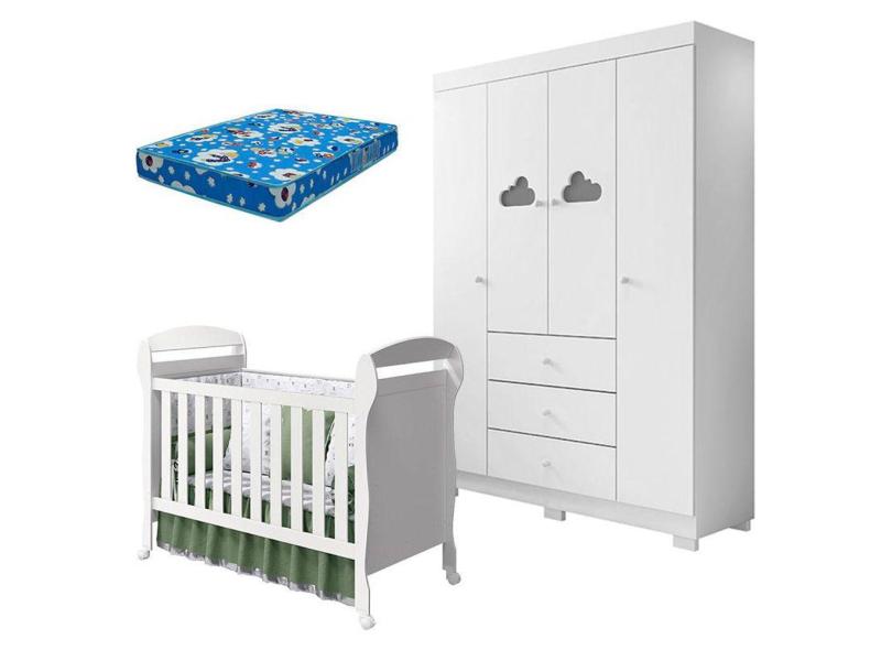 Berço Americano Danny e Guarda Roupa Infantil Ane Branco Brilho com Colchão Ortobom - Phoenix Baby