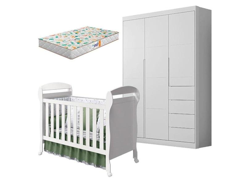 Berço Americano Danny e Guarda Roupa Infantil Eloá Branco Acetinado com Colchão Gazin – Phoenix Baby