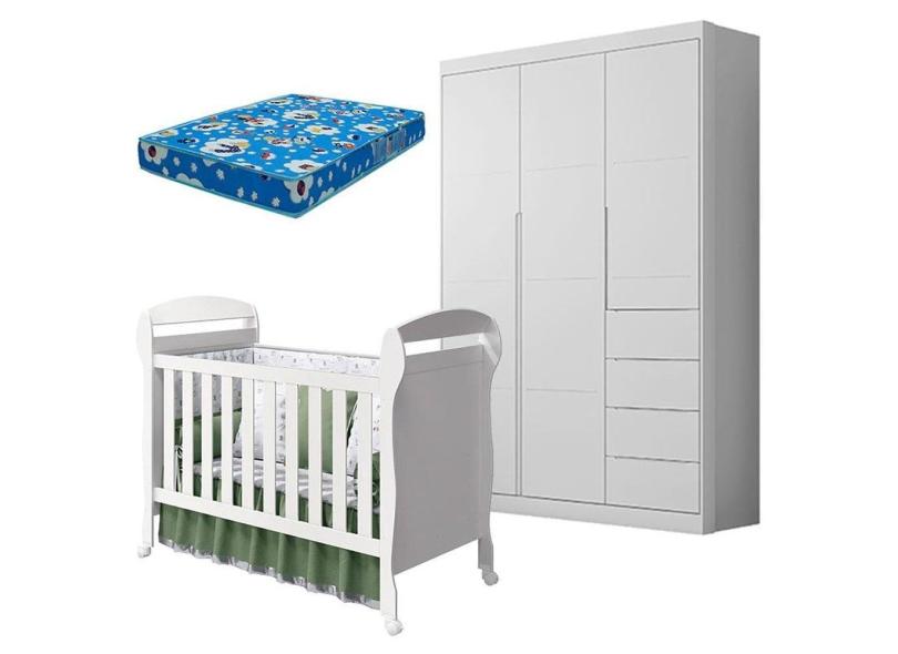O menor preço encontrado no Brasil para Berço Americano Danny e Guarda Roupa Infantil Eloá Branco Acetinado com Colchão Ortobom – Phoenix Baby atualmente é R$ 1.857,94.