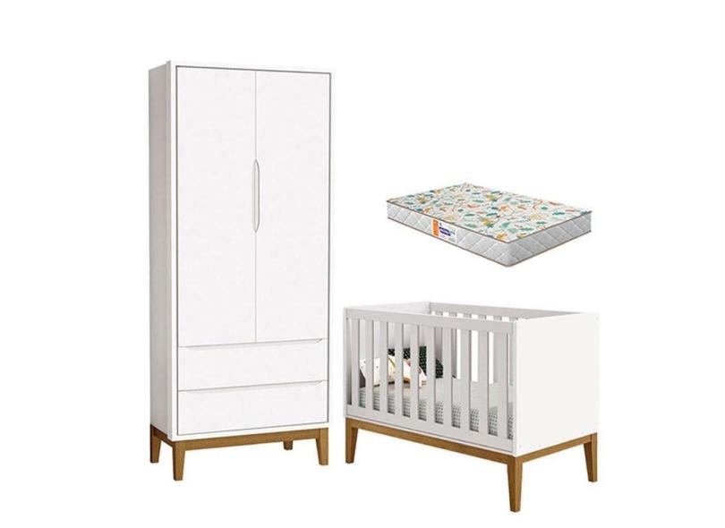 Berço Americano E Guarda Roupa 2 Portas New Classic Branco Com Pés Madeira E Colchão Gazin - Reller