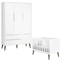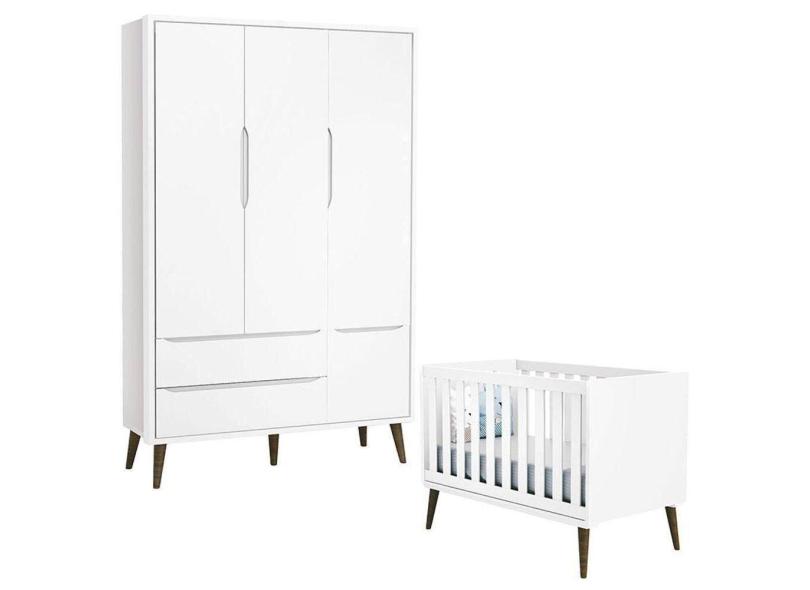 O menor preço encontrado no Brasil para Berço Americano E Guarda Roupa 3 Portas Infantil Theo Branco Acetinado Com Pés Amadeirado - Reller atualmente é R$ 1.901,56.