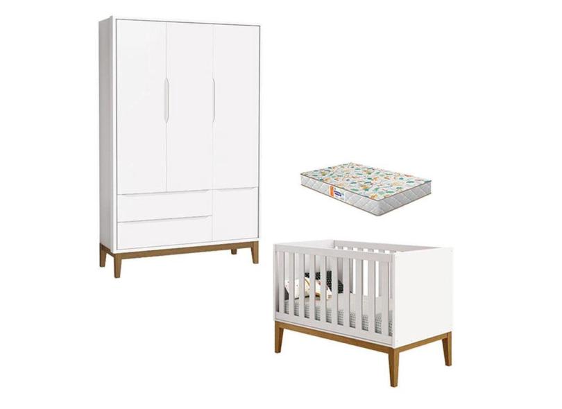 Berço Americano E Guarda Roupa 3 Portas New Classic Branco Com Pés Madeira E Colchão Gazin - Reller